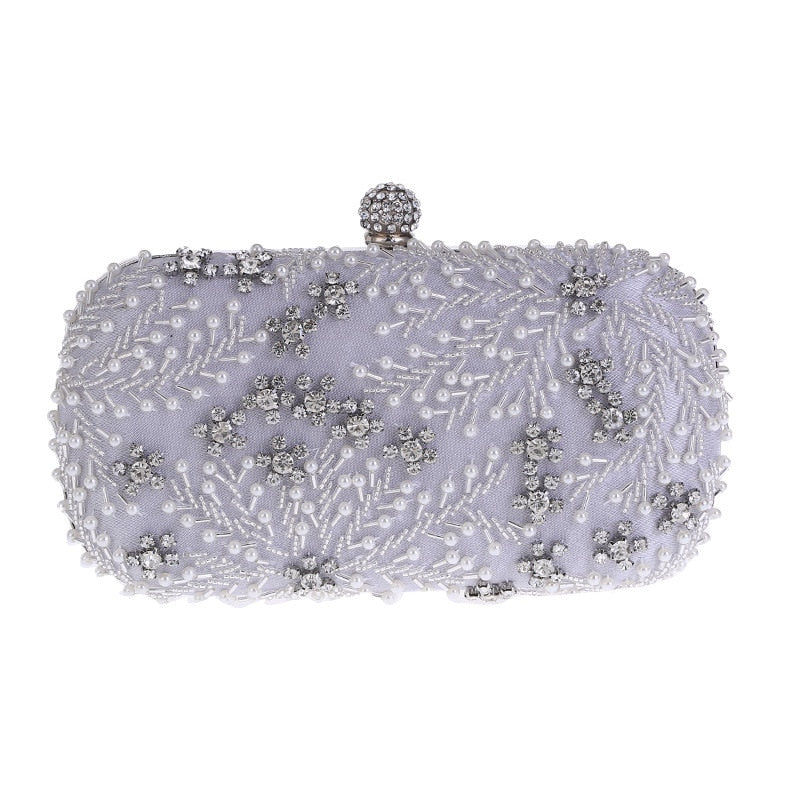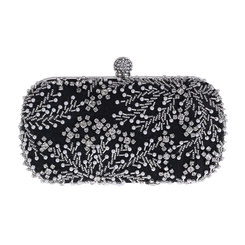 A luxurious handbag embroidered with crystals and pearls