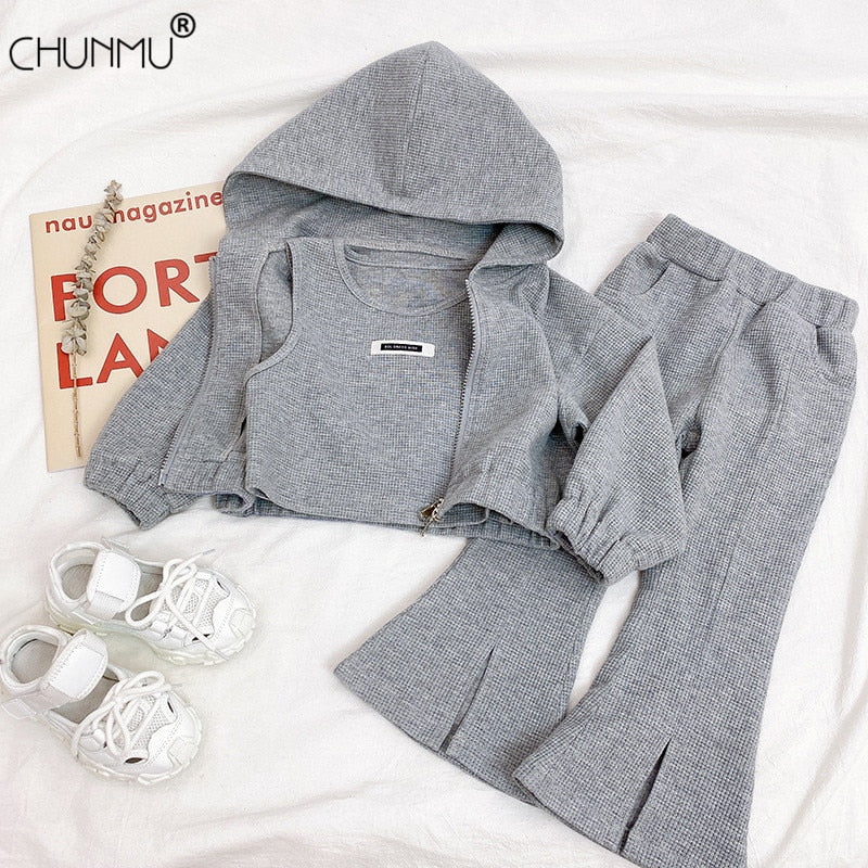 Baby Girls 3 Pieces Clothing Set Flared Split Pants , Knitwear Hooded Jacket