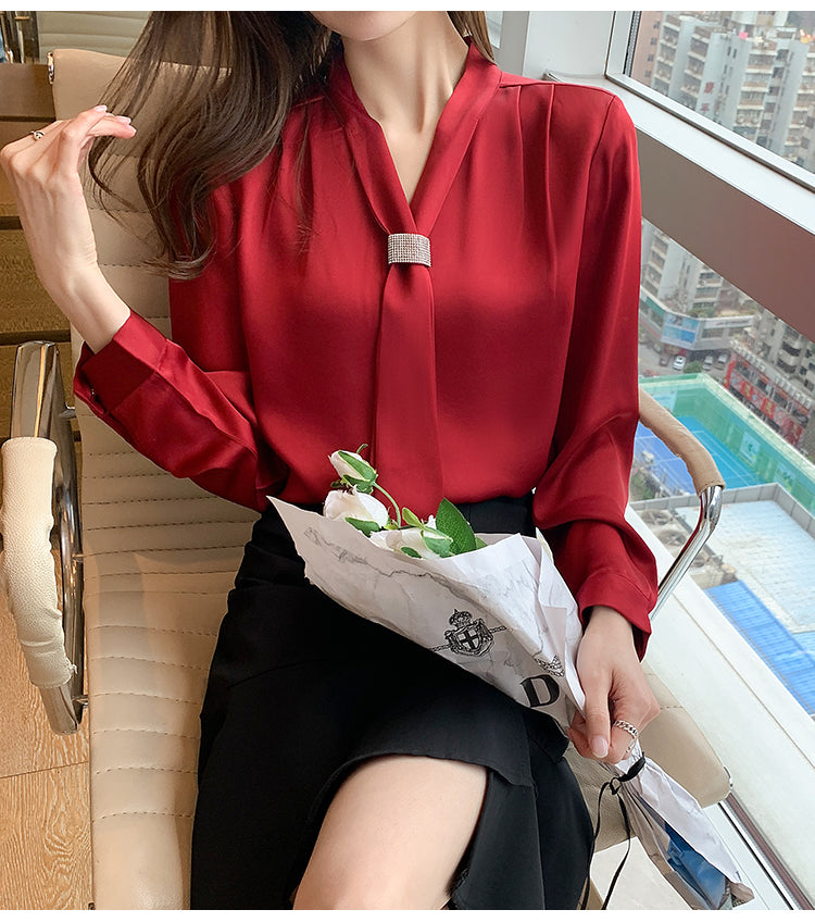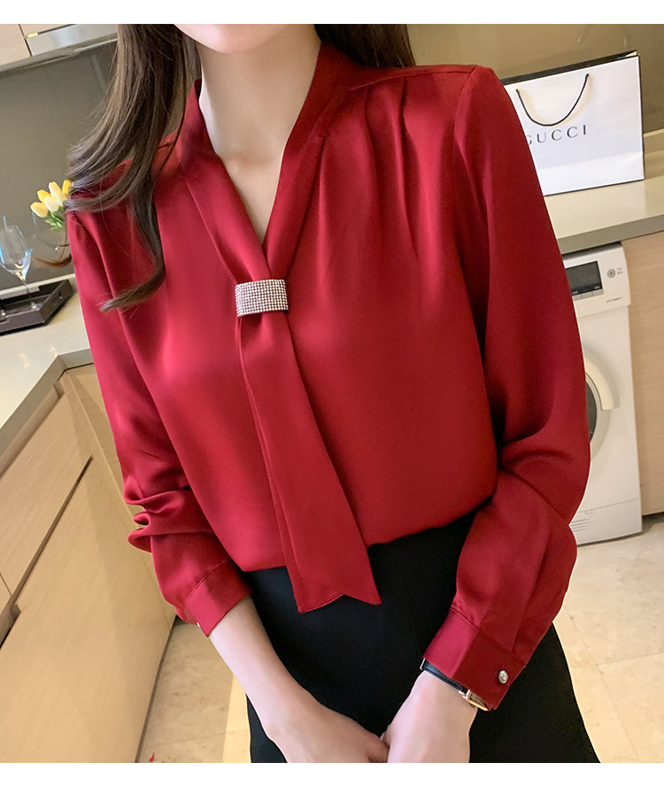 قميص شيفون نسائي بأكمام طويلة