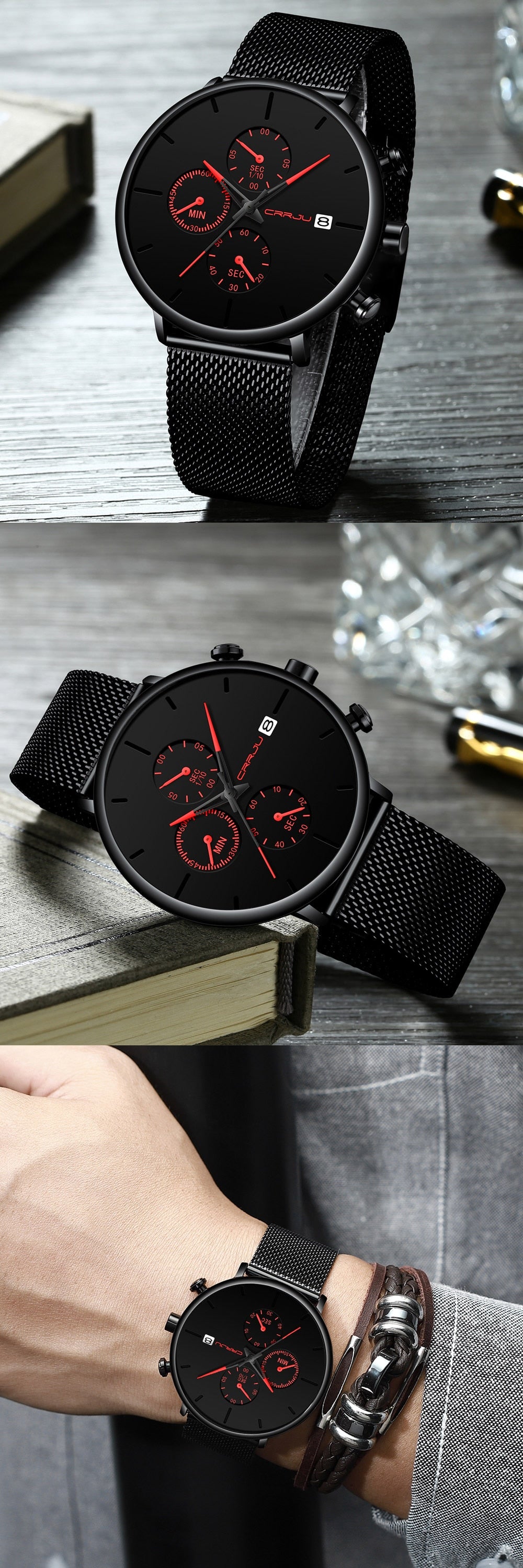 Sport Watch Mesh Steel Date Week Waterproof Quartz Watch for Men