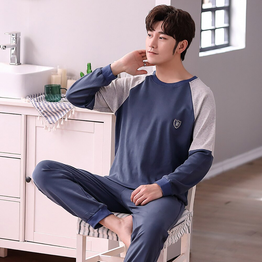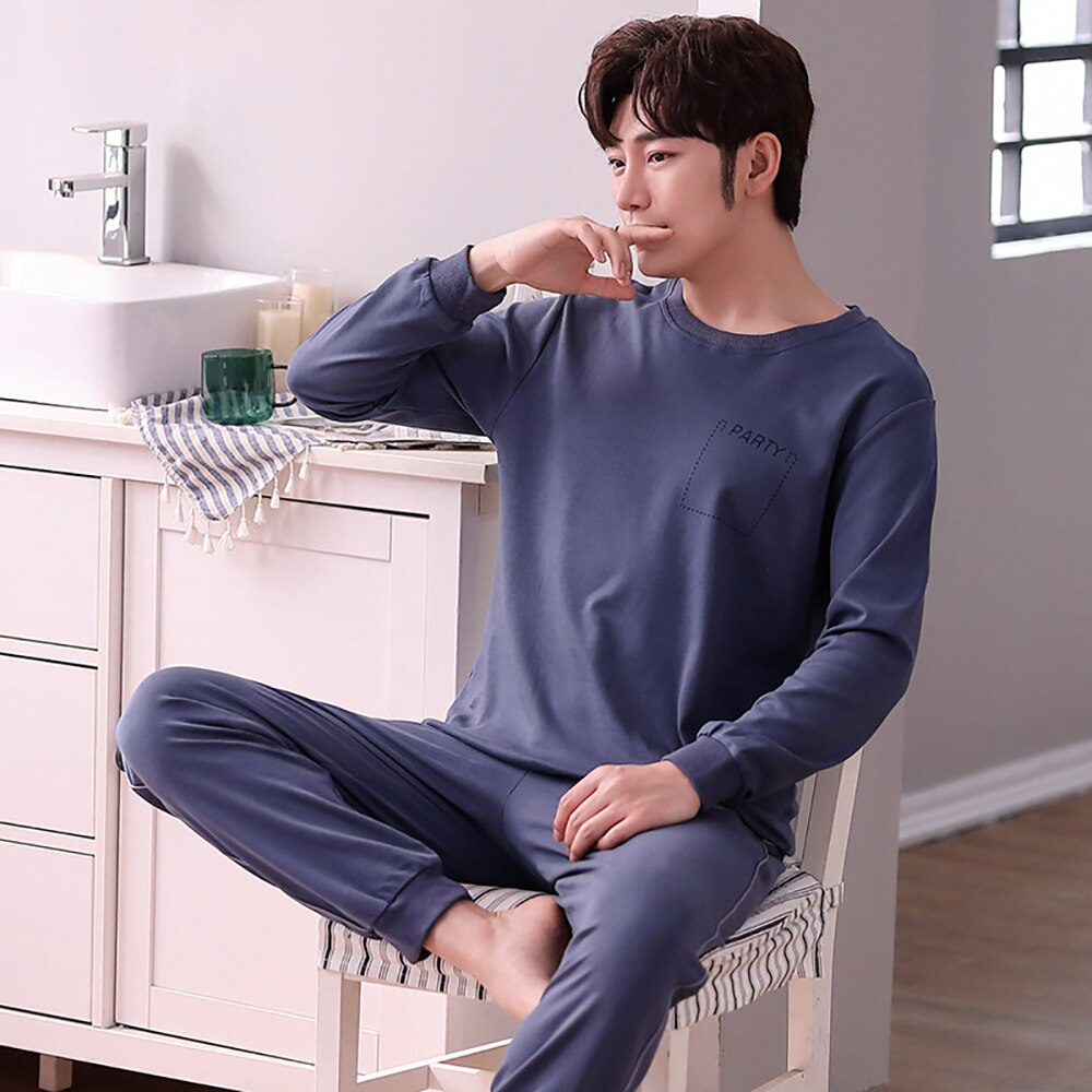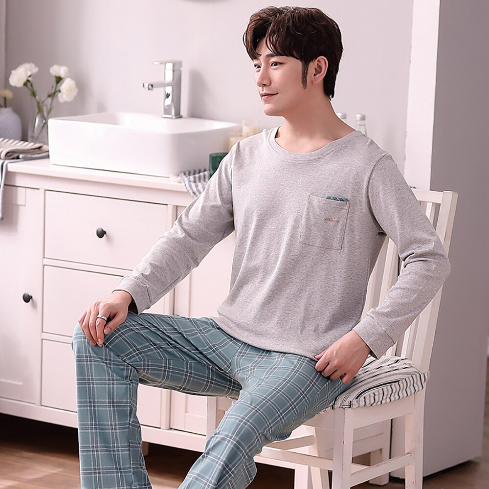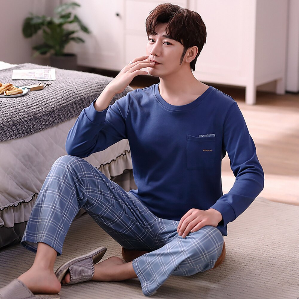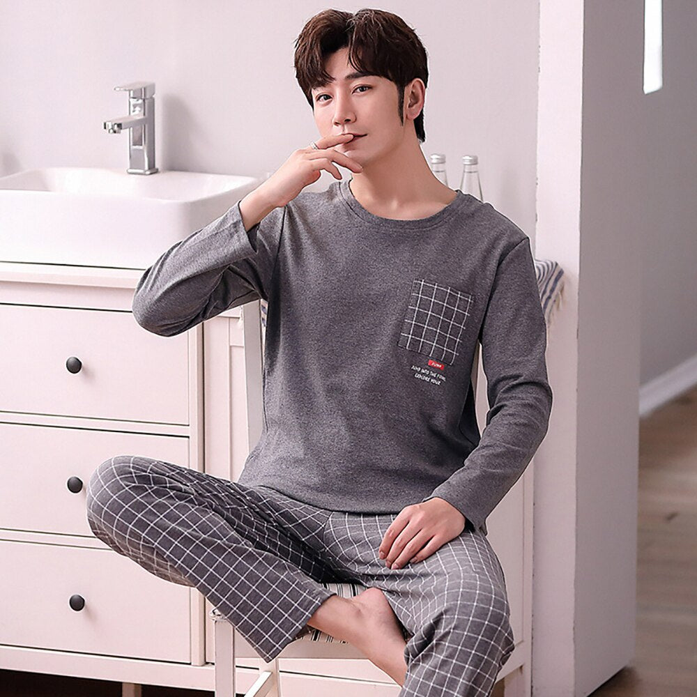 Cotton Men's Pajama Casual Long Sleeve Sleepwear Soft for Men