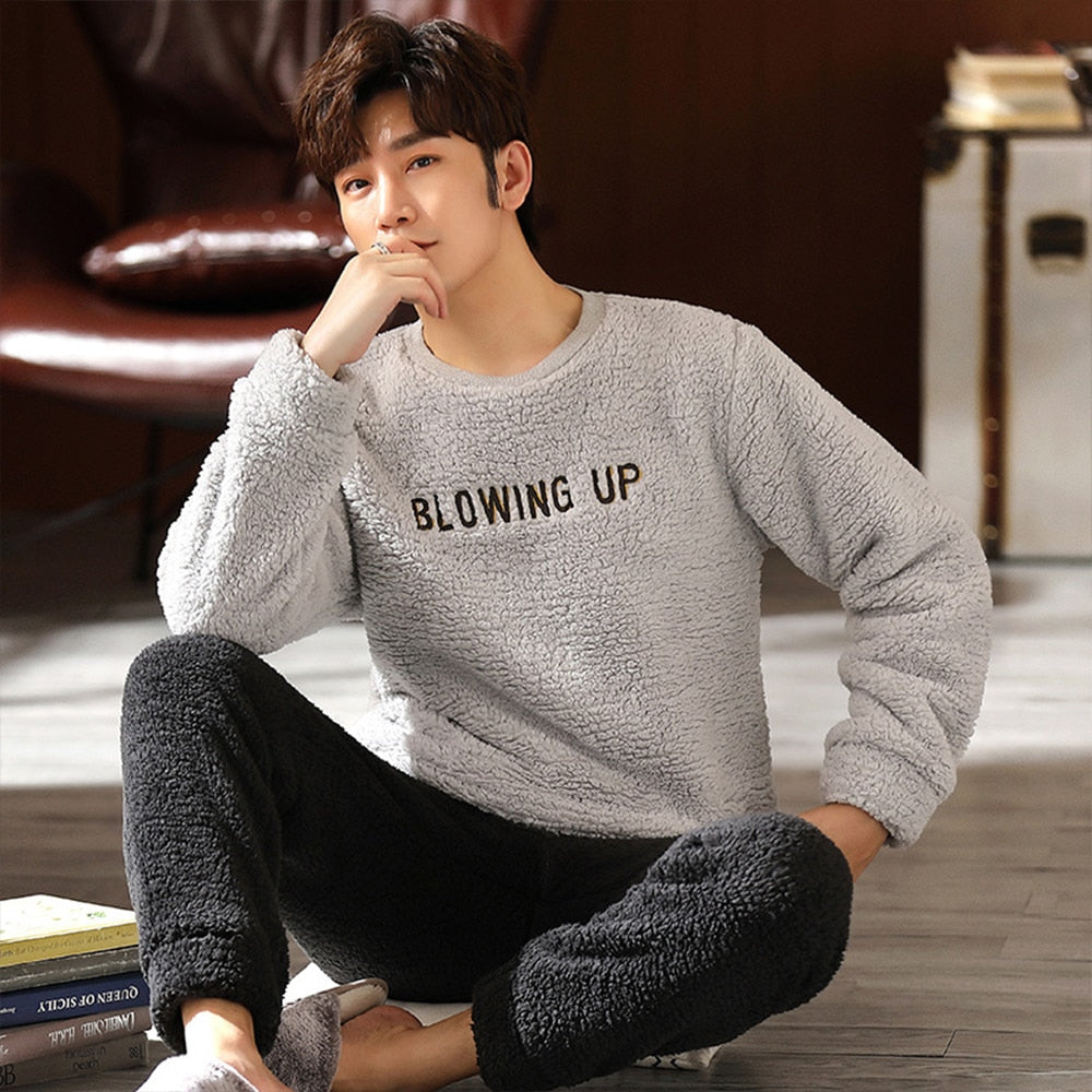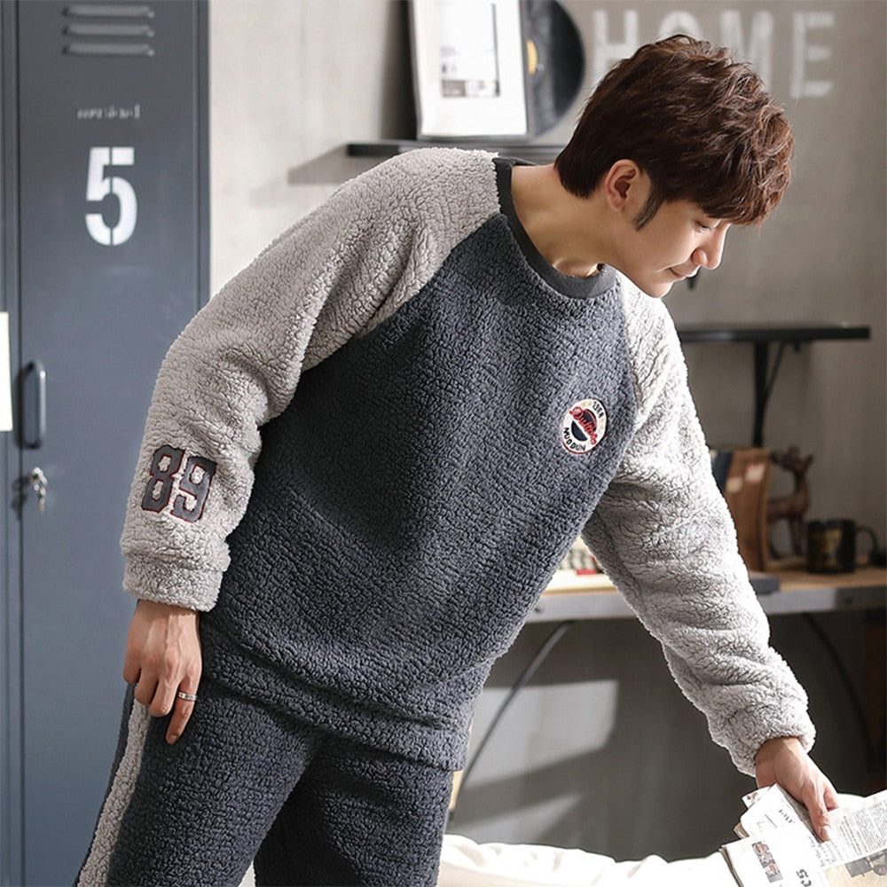 Men Flannel Pyjamas Warm Pijamas Suit Casual