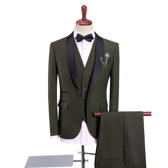 Wedding Tuxedo Suits 3 Pieces Shawl Lapel Slim Fit