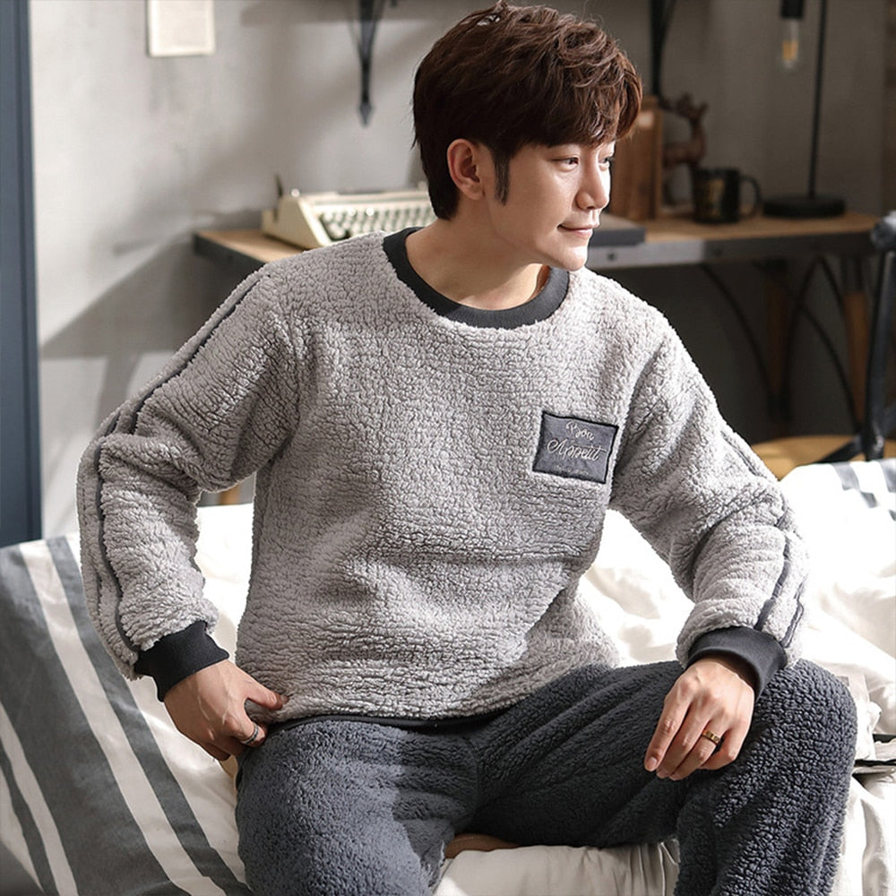 Men Flannel Pyjamas Warm Pijamas Suit Casual