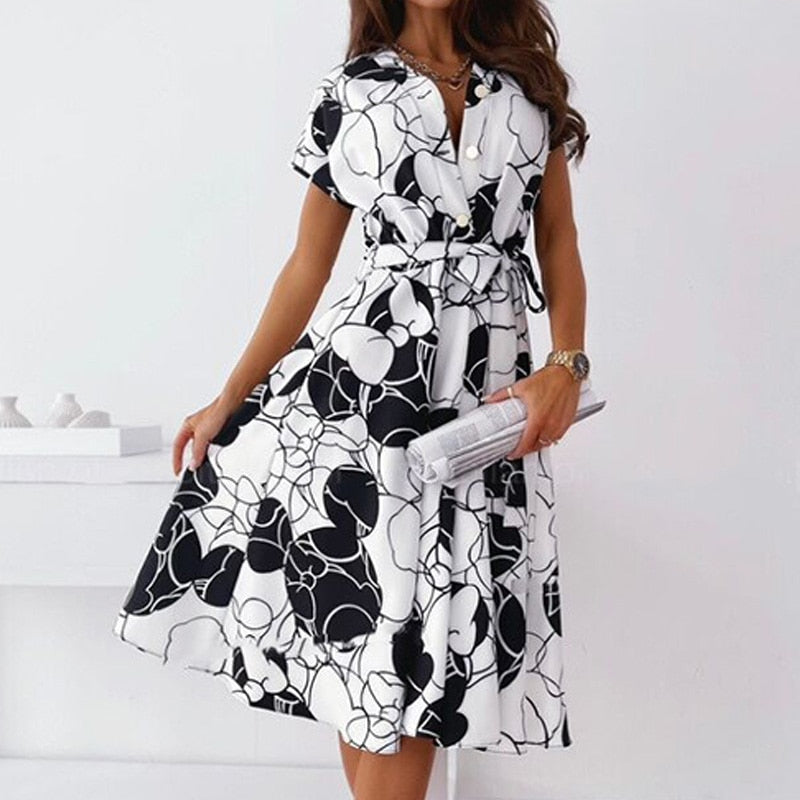 Midi dress for women, short sleeves, elegant cut