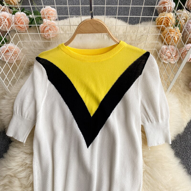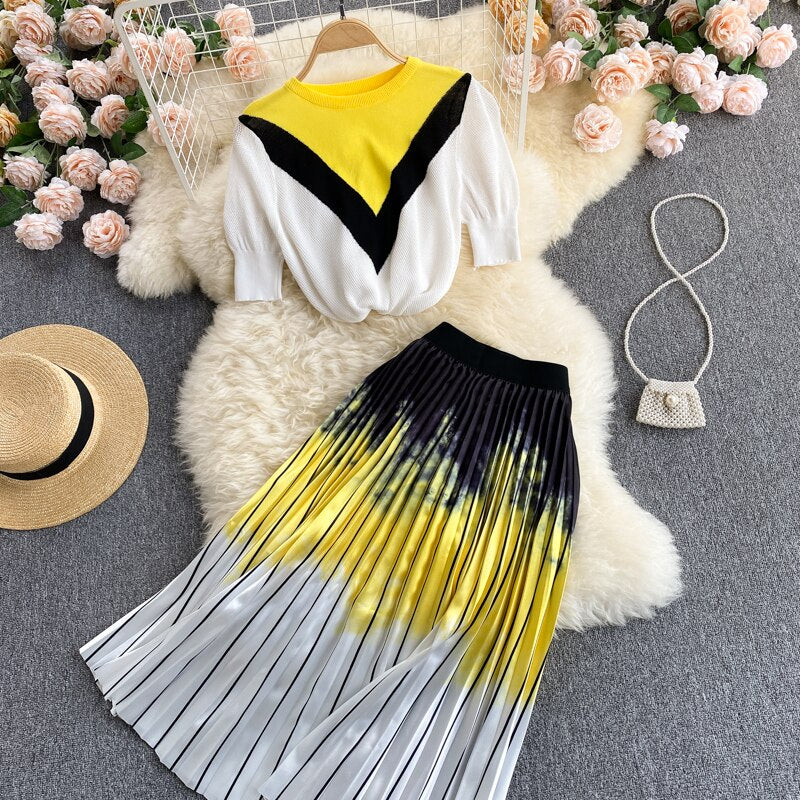 Elegant women's short-sleeved two-piece high-waisted skirt suit