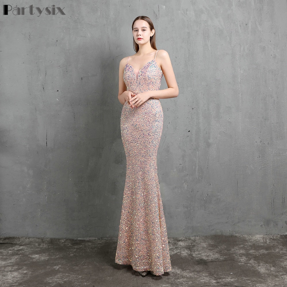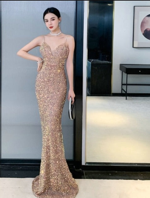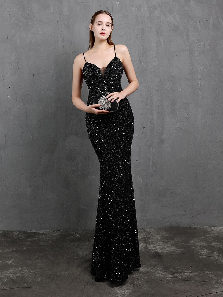 Women's Evening Dress Sequin Sleeveless Maxi Dress