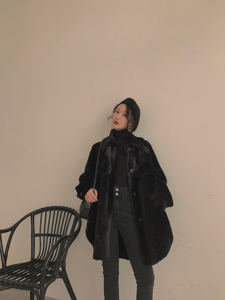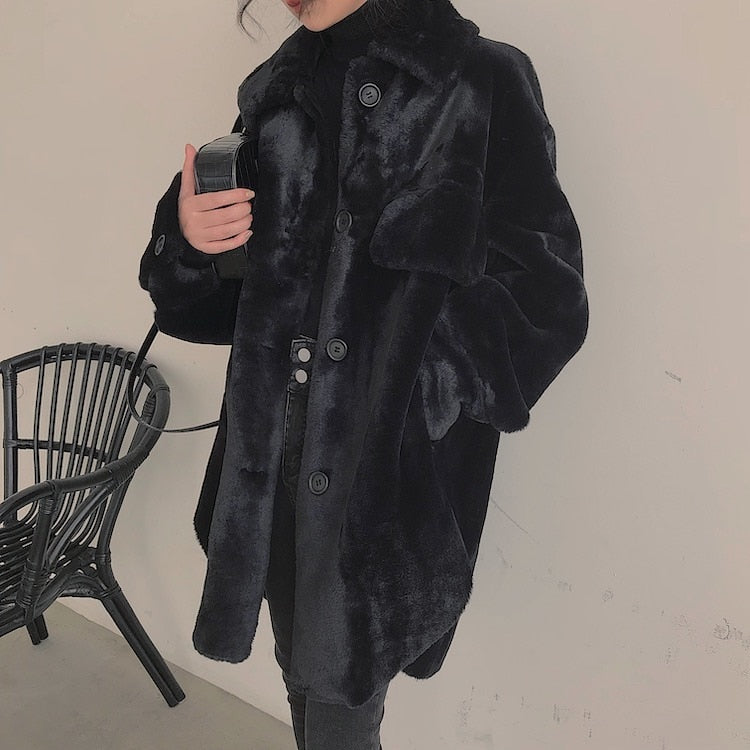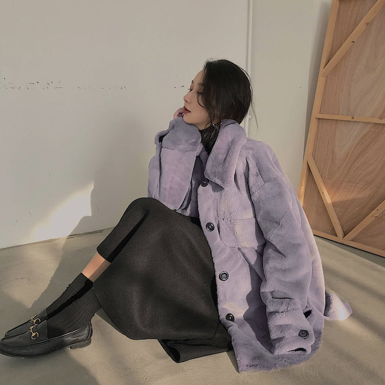 Women's warm faux fur coats long sleeve button down puffer jacket