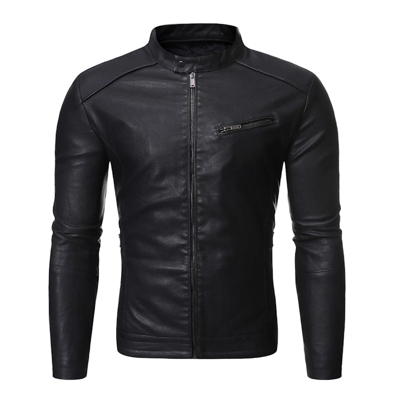 Men Leather Jacket Casual Solid Color fashion Slim Fit Spring