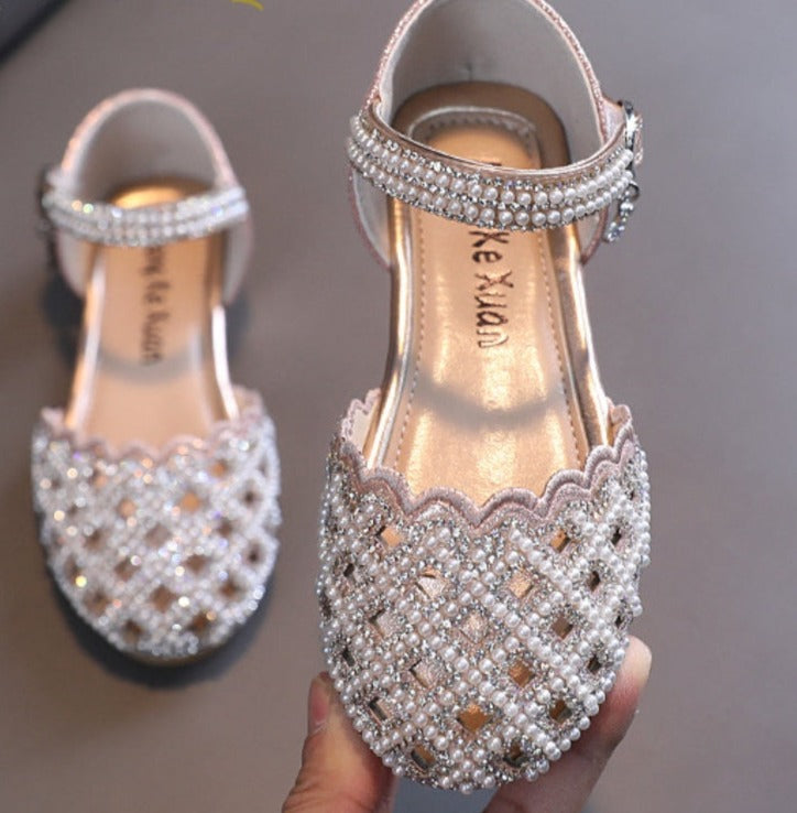New Kids Pearl Flats Sandal Girls Princess Rhinestone Party Sandal