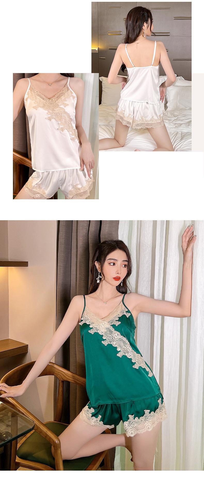 Lace Pajamas Suit Women Satin Strap Cami Top and Pants Sleepwear Set 2pcs Homewear Nightwear