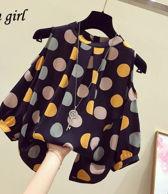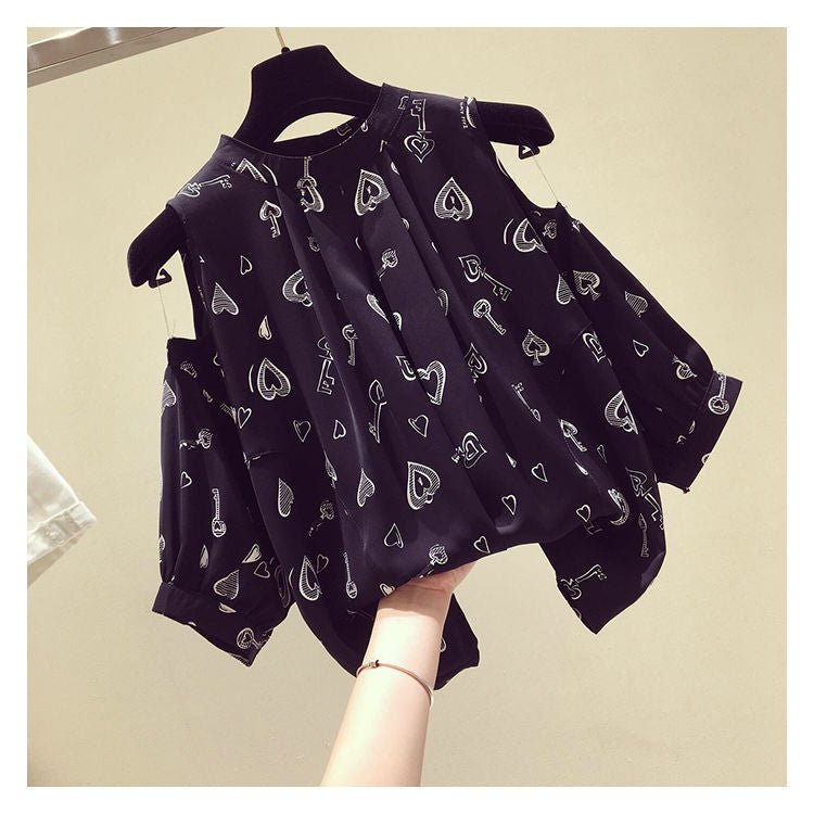 Summer Women Blouse Sexy Off Shoulder Chiffon Lantern Sleeve Loose Pattern