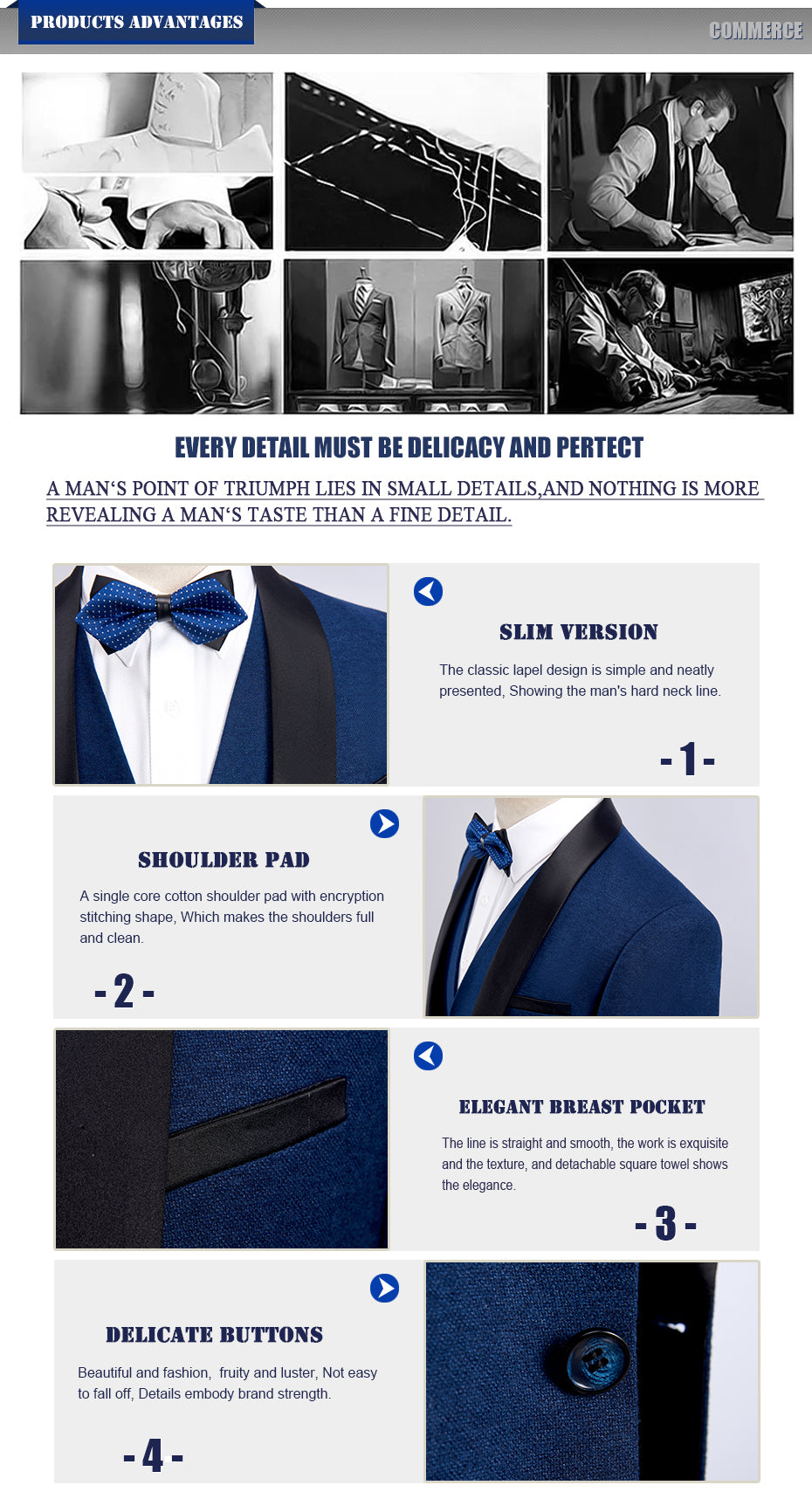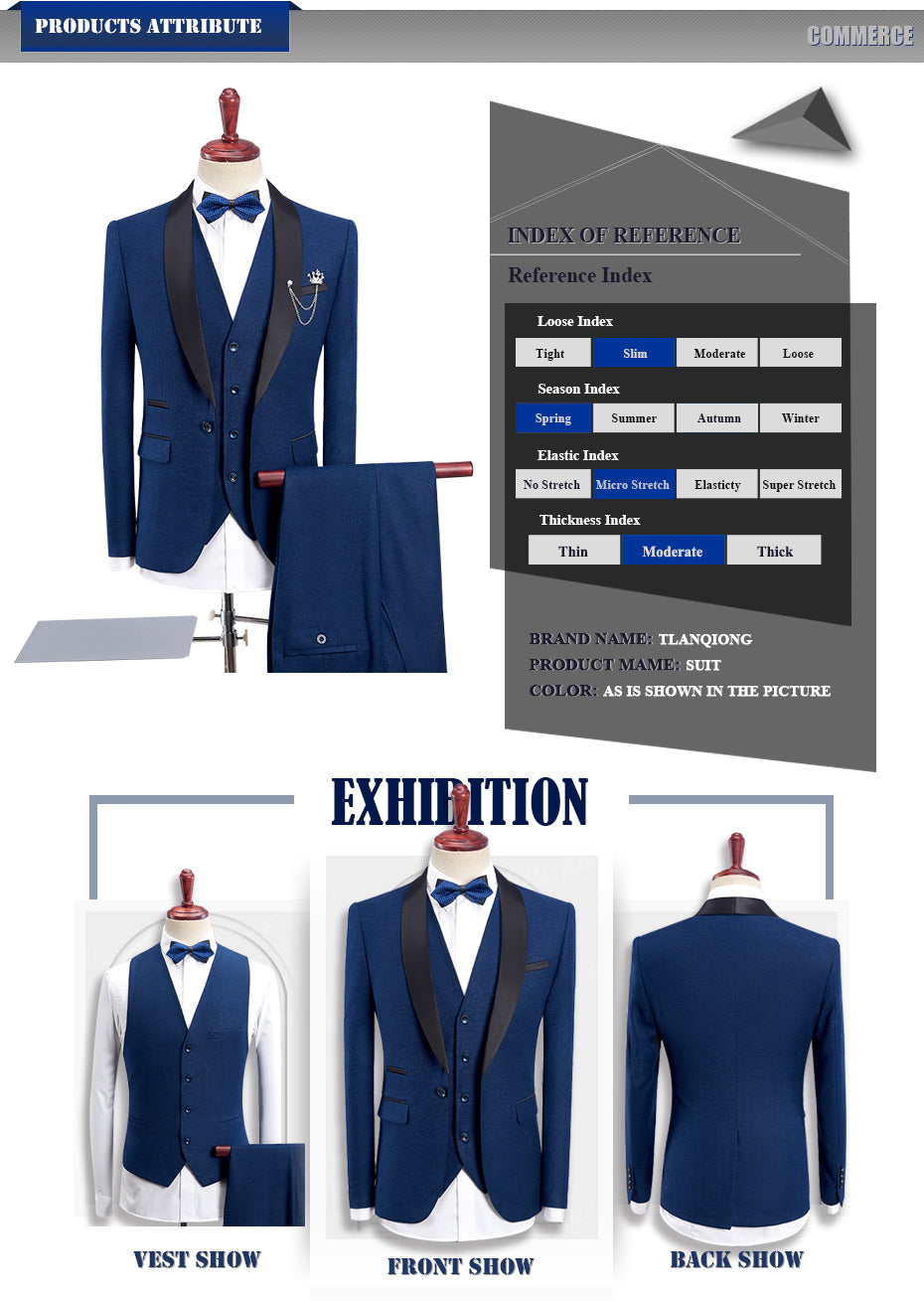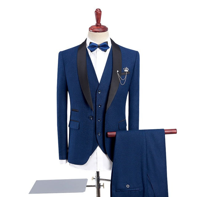 Wedding Tuxedo Suits 3 Pieces Shawl Lapel Slim Fit