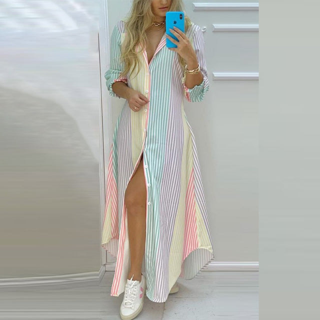 Women's Long Sleeve Turn-down Collar Letter Print Long Dress