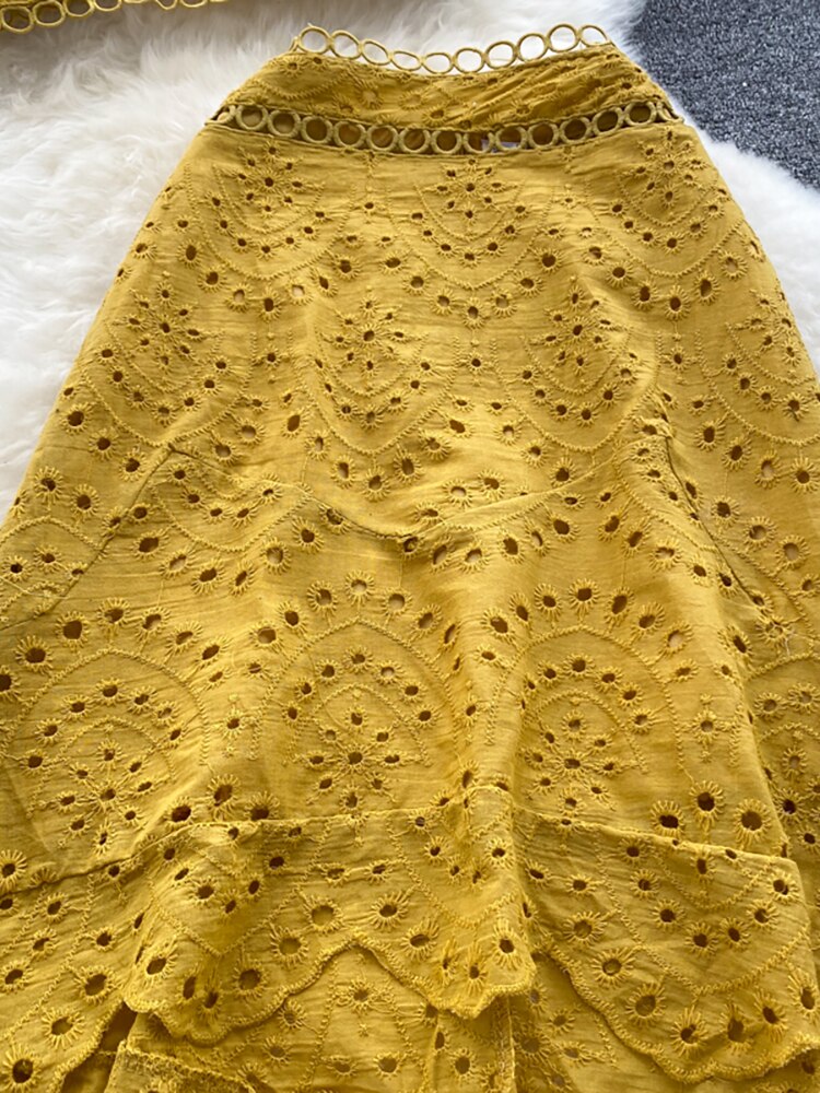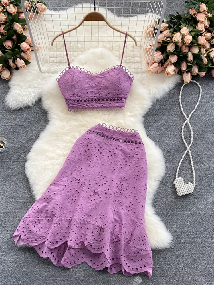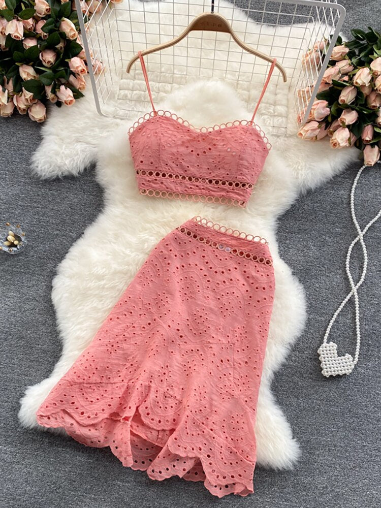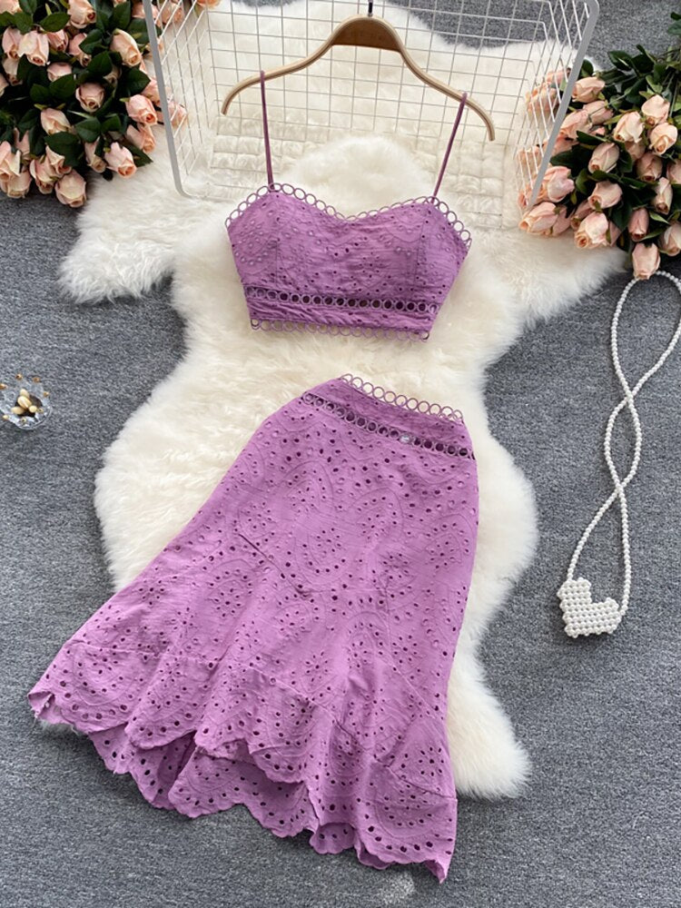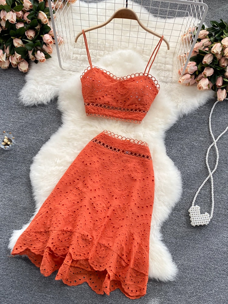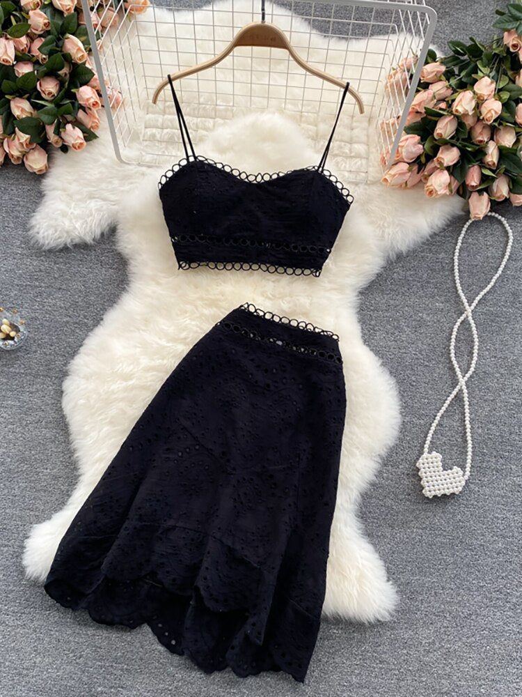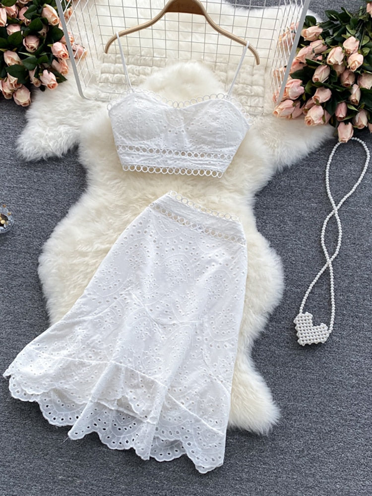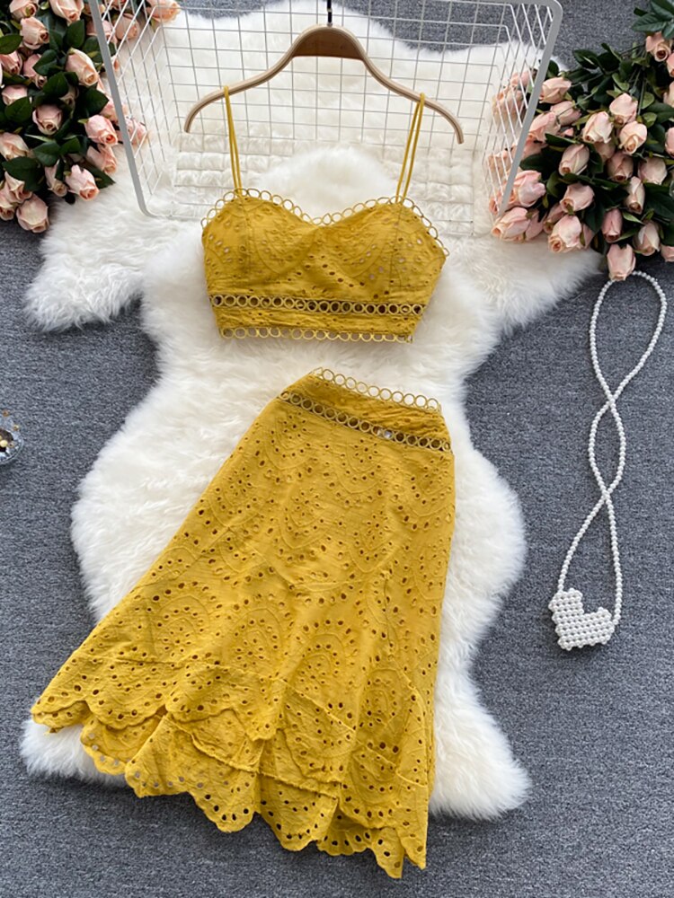2 Piece Set Women V-neck Crop Top + High Waist Ruffle Skirt