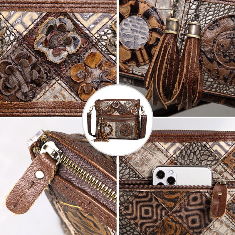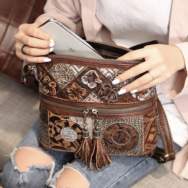 Genuine Leather Crossbody Bag Women Luxury Designer Handbag Ladies Vintage Tassel Simple Top-Handle Bags