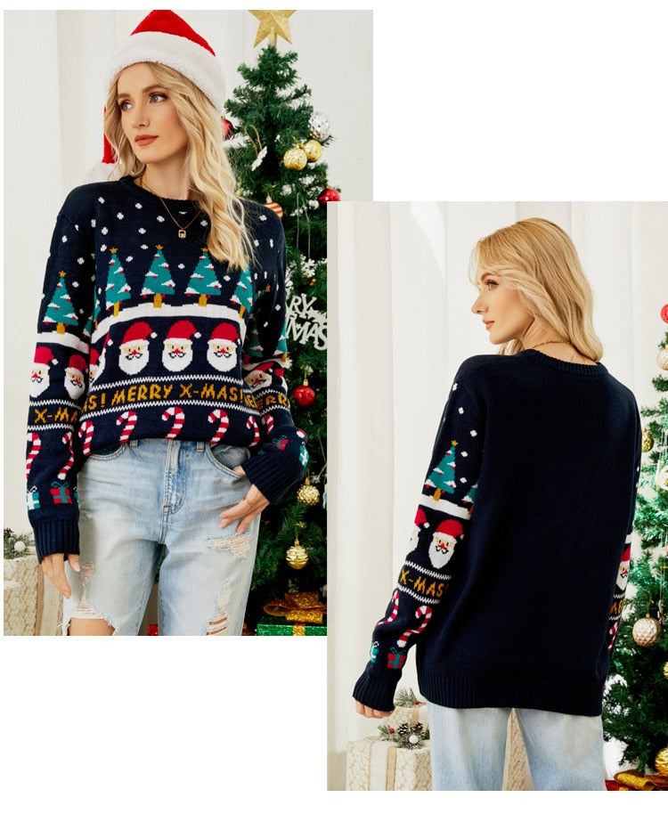 Long-sleeved knit sweater with a chunky Christmas tree design
