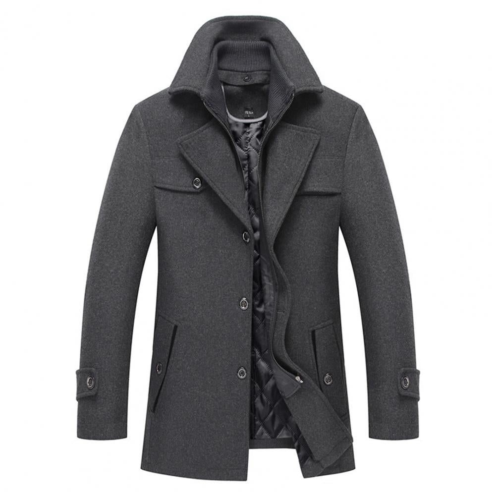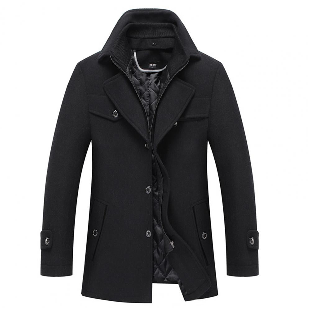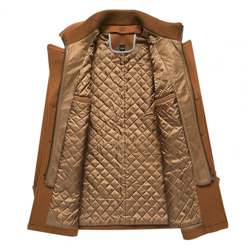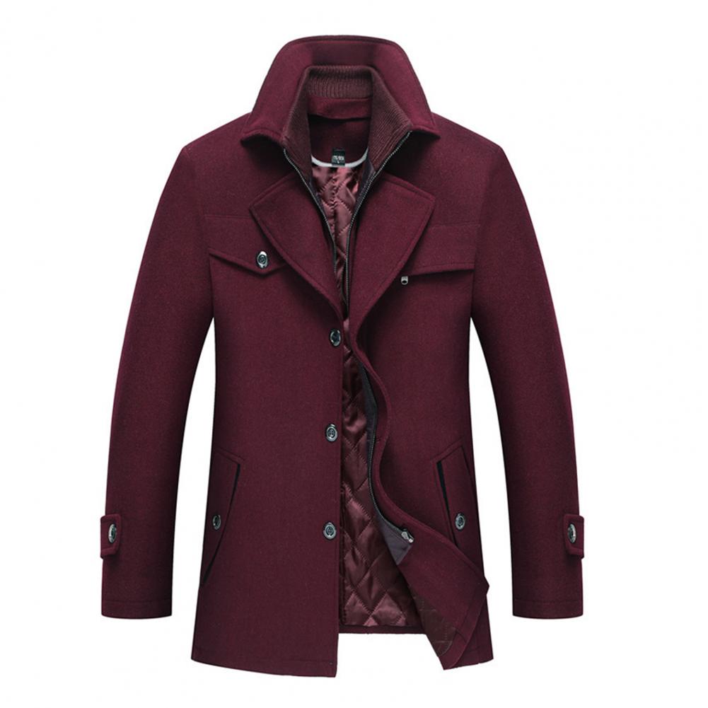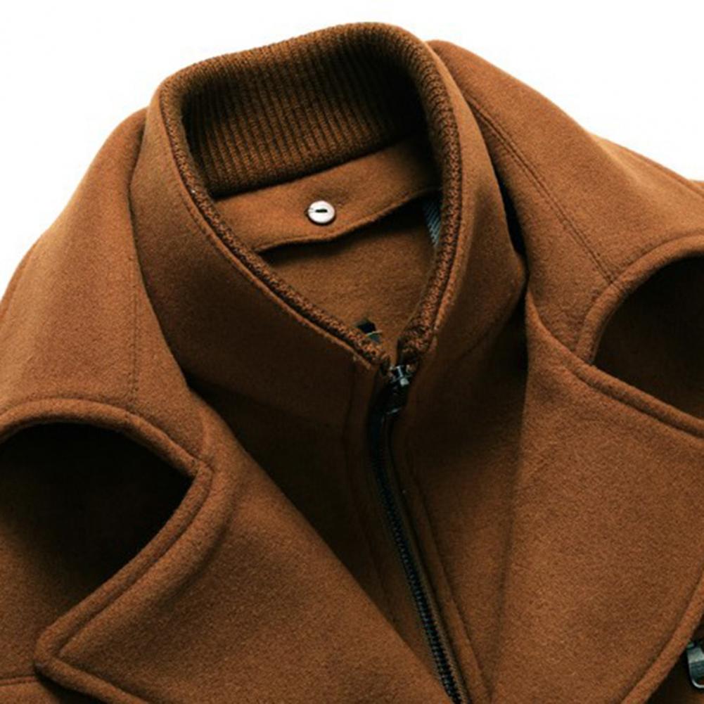 Men Jacket Coat Pockets Winter Windbreaker Solid Woolen Coat Mid-Length 2023