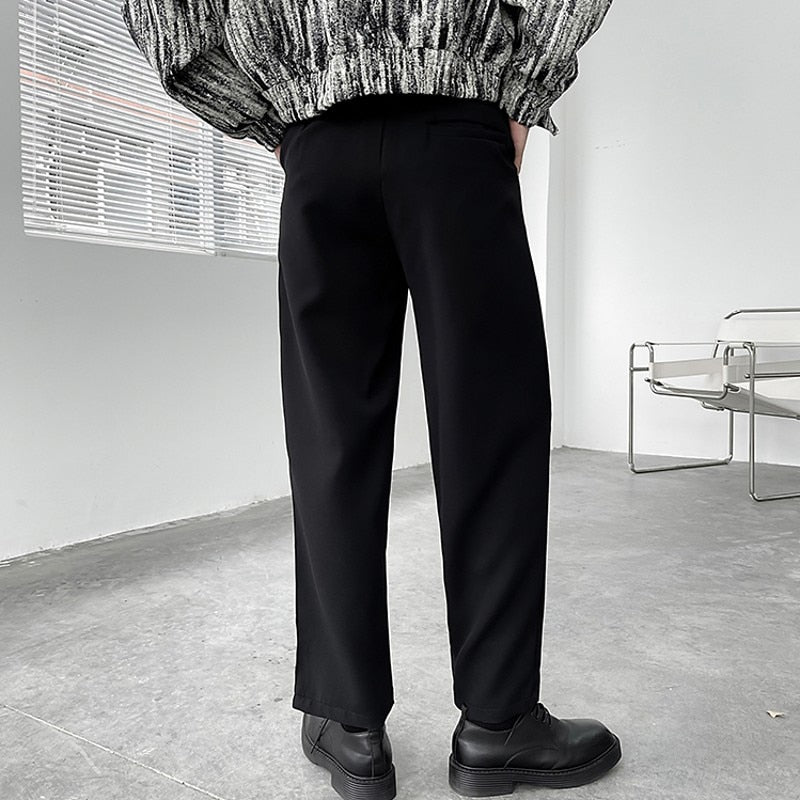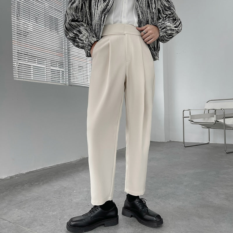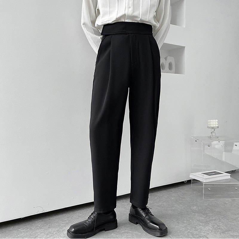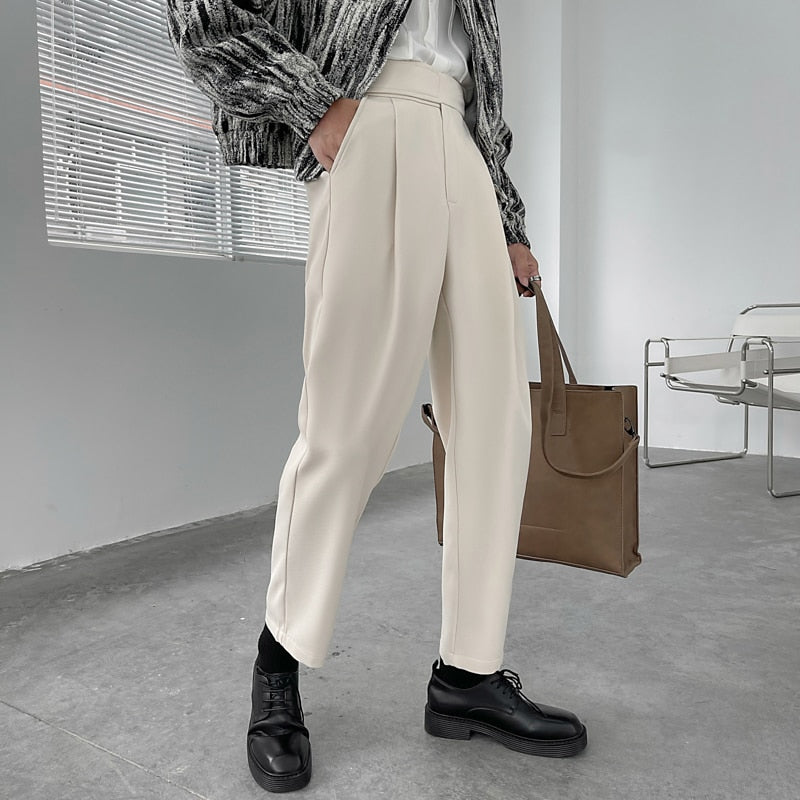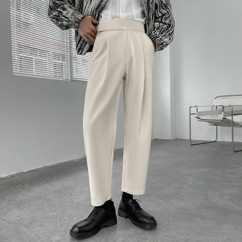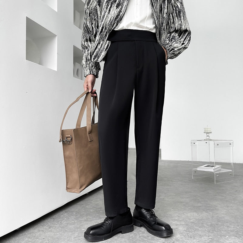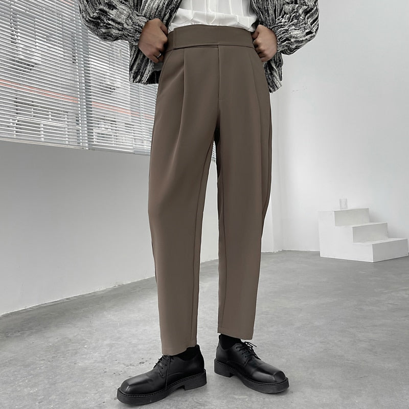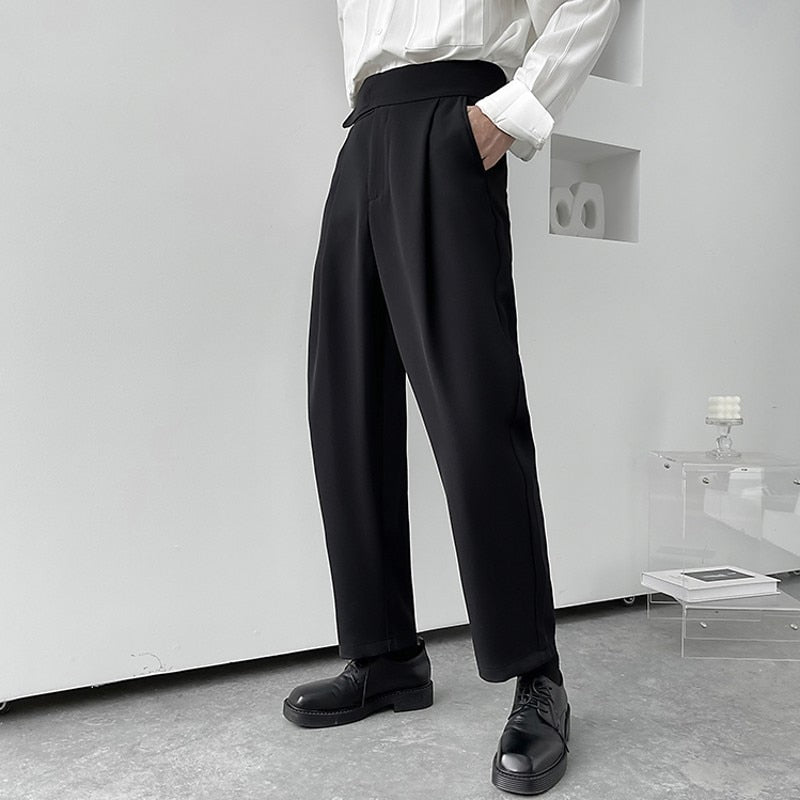 Men Pants Spring Autumn Solid High Waist Velcro Casual Pant