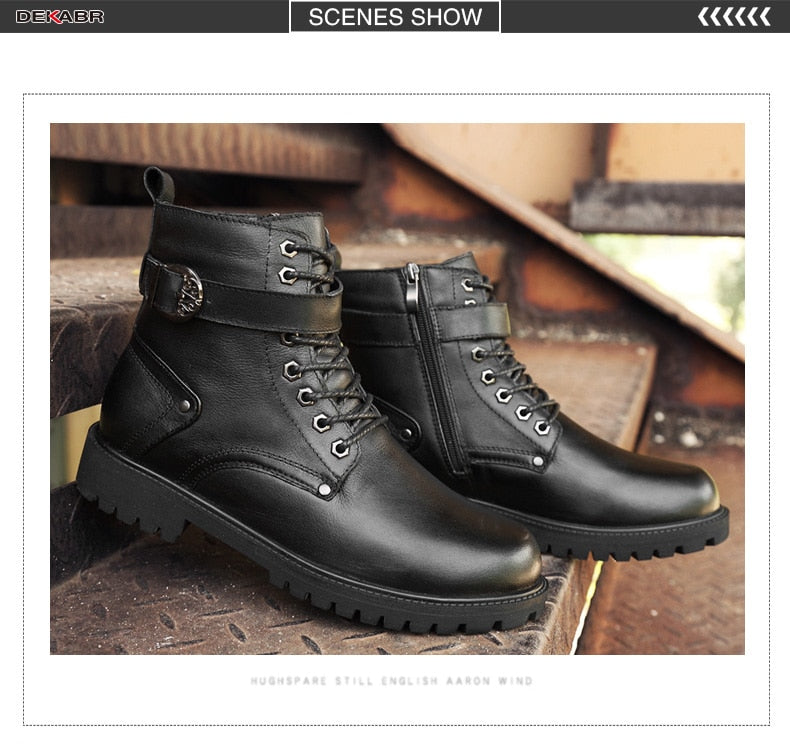 Men's Leather Lace-up Ankle Boots High-Quality Winter Shoes