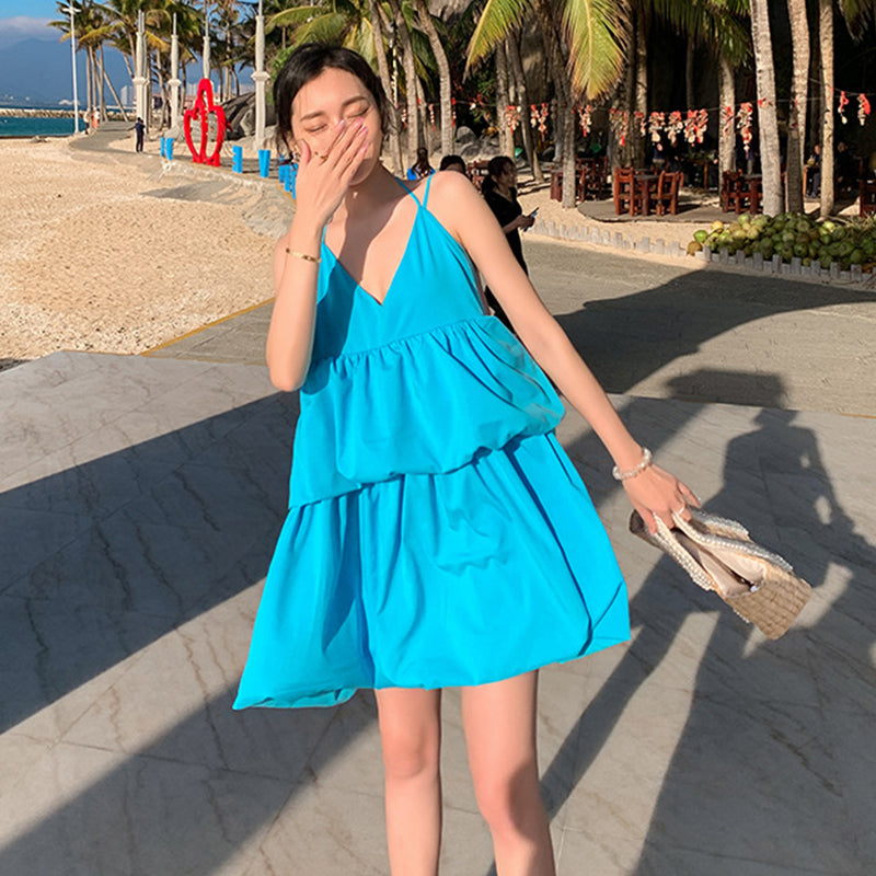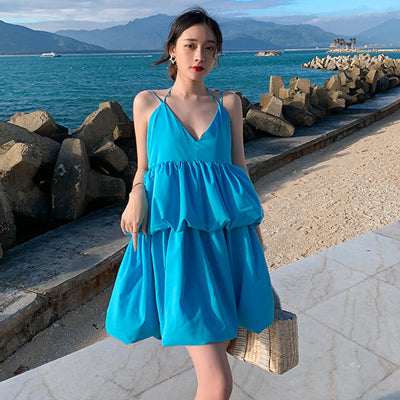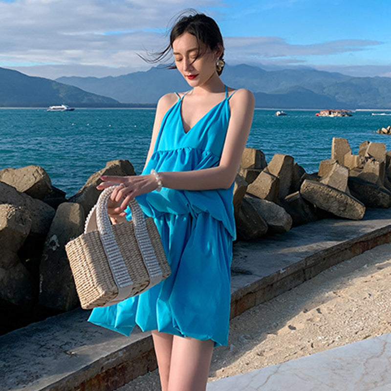 Women Summer Sexy Deep V Neck Beach Holiday Mini Party Dress