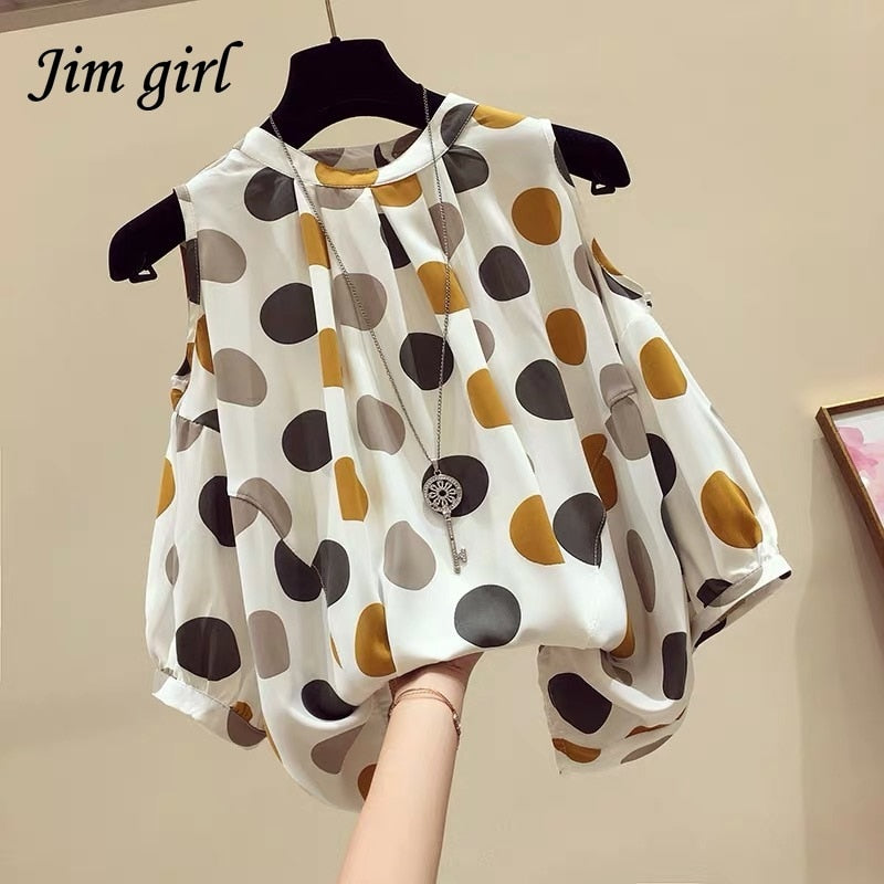 Sleeveless Polka Pot Lace Up Tie Bow Blouses