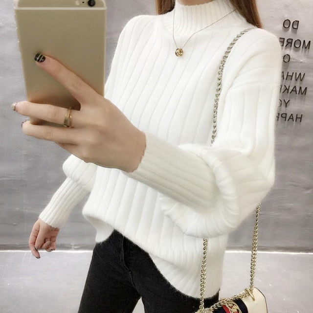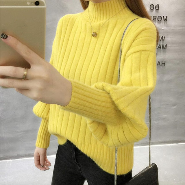 Simple Women Turtleneck Sweater Winter Fashion Elastic Knit Ladies Jumper Casual