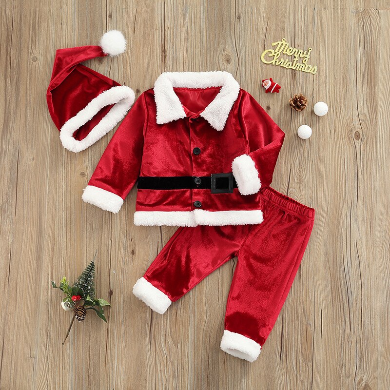 Christmas clothing set winter warm thicken Santa Claus long-sleeved jacket + pants + hat costumes