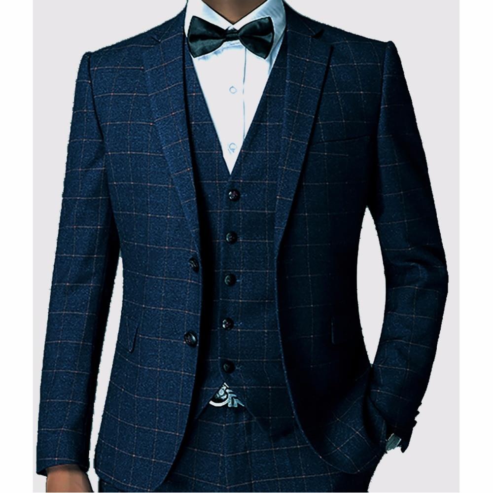 Tailored Checkered Men Blue Suit Tailor Made Style