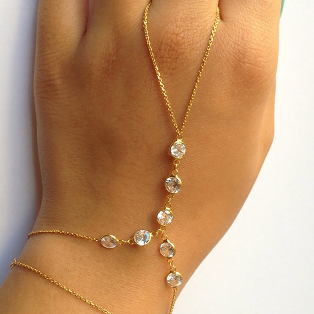 Chain Bracelet With Rings For Women Hollow Crystal Ring Connected Finger Bracelets