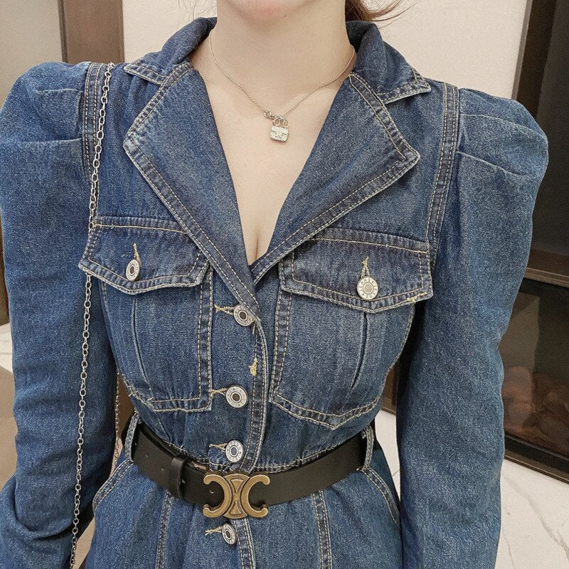 Denim Long Dress Women Casual Lapel Sleeve Long Cowboy